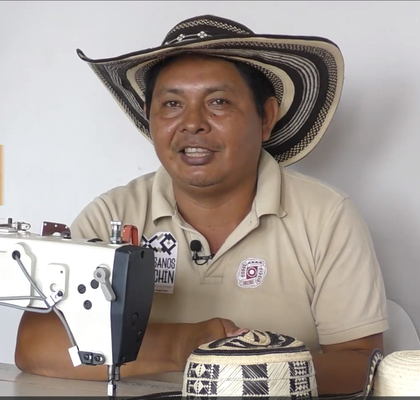 Rodrigo Cesar Lázaro Zurita, perteneciente a la etnia Zenú, vive en la vereda Esmeralda Sur del municipio de Tuchín, aprendió el tejido de la caña flecha a muy temprana edad, incluso antes de empezar sus estudios en el colegio. En su comunidad las artesanías se dan de generación en generación, desde que nací viendo el trabajo de mi papá desde corta edad, me enseñaron los diferentes tipos de tejido del sombrero vueltiao, que es nuestra especialidad, además hacemos tapetes, bolsos, billeteras, pulseras, accesorios y artículos para el hogar, hemos diversificado el trabajo con la caña flecha.